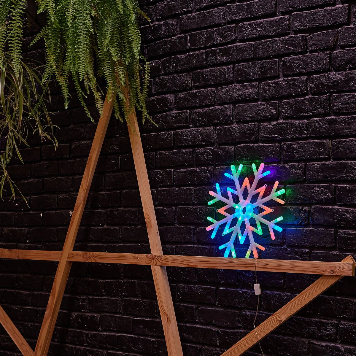 Полное описание: Фигура светодиодная Снежинка 40х40см Подвесная 48 светодиодов RGB свет Провод прозрачный ULD-H4040-048/DTA RGB IP20 SNOWFLAKE TM Uniel