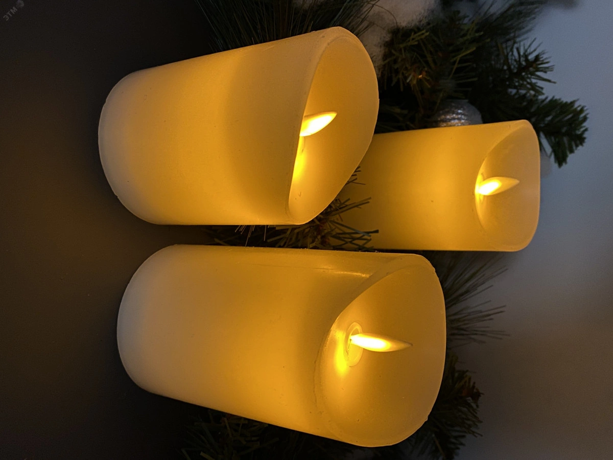 Фигура светодиодная Свеча на батарейках 2AA (не в/к) в составе набора из 3 штук Диммируемые 1 светодиод Теплый белый свет Пульт ДУ (в/к) ULD-F055 WARM WHITE RC CANDLE SET3