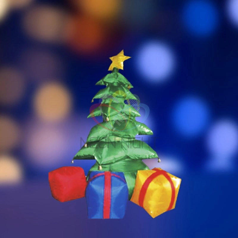Надувная 3D-фигура ''Подарки под елкой'' высотой 240 см — это объемный интерьерный и экстерьерный декор с внутренней подсветкой, за которую отвечают 5 ярких экономичных диодов. Благодаря полной влагозащите IP65 украшение можно разместить как дома, так и на улице, а, чтобы его не унесло ветром, в комплекте идет надежный крепеж. Фигура выполнена из прочного капронового текстиля, не пропускающего воздух, и надувается при помощи компрессора. Устройство поддерживает постоянный объем. Для подключения к электросети 230 Вольт используется понижающий трансформатор. Размер надутой фигуры 200x210x240 см.