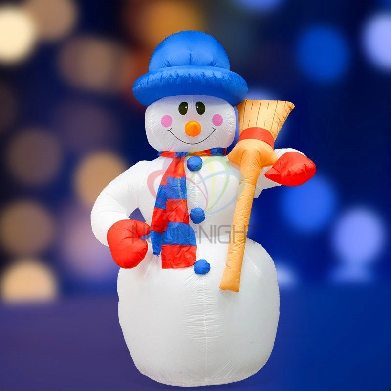 Надувная 3D-фигура ''Снеговик с метлой'' высотой 240 см — оригинальный праздничный декор, выполненный в виде доброго сказочного персонажа, который вызовет море улыбок и поднимет настроение каждому гостю на вашем новогоднем празднике. Купол произведен из капрона. За поддержание постоянного объема воздуха во внутренней камере отвечает электрический компрессор, работающий от обычной розетки. 5 светодиодов ярко подсвечивают композицию изнутри, создавая эффект объема. Для размещения на улице предусмотрена герметизация от воды и пыли IP65 и надежный крепеж.