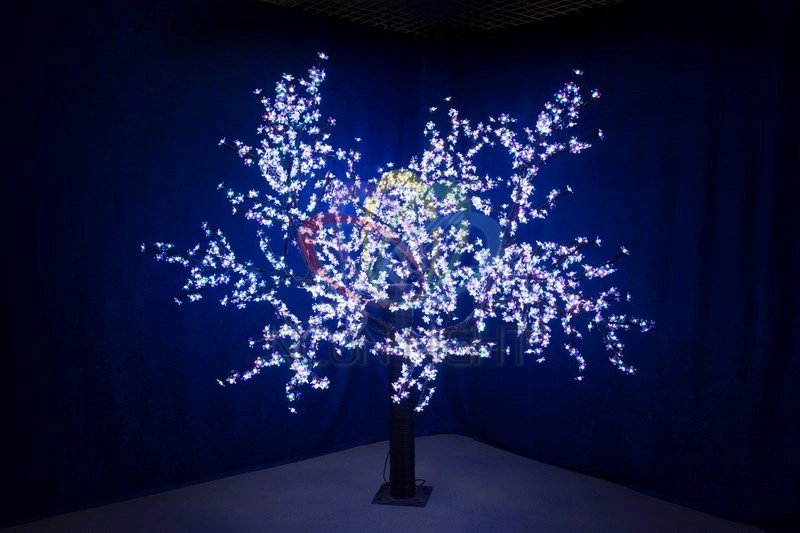 Светодиодное дерево ''Сакура'' 2,4 м подходит для эффектного оформления квартир с высокими потолками, частных домов, общественных объектов, уличных площадок и террас. Благодаря защите IP65 внутренние компоненты конструкции надежно защищены от влаги и пыли. Изделие легко выдерживает перепады в температурном диапазоне –40...+50 градусов. За зрелищную подсветку отвечают 5184 ярких диода, расположенных в декоративных цветах японской вишни, густо рассыпанных на изящных ветках. Экономичные диоды RGB светятся разными цветами . Сетевой адаптер идет в комплекте.