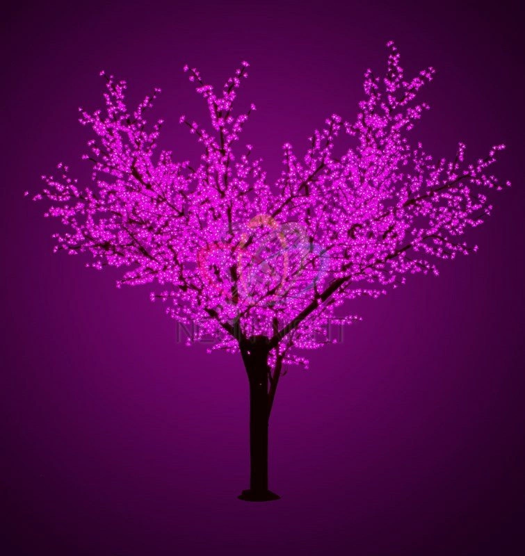 Светодиодное дерево ''Сакура'' высотой 3,6 метра излучает мягкий фиолетовый свет, который эффектно выделяет декоративные цветы на изящных ветках. Ствол и крона выполнены из ПВХ черного цвета. Диаметр композиции в самом широком месте составляет 3 метра. Для размещения на ровных поверхностях предусмотрена металлическая подставка с отверстиями для крепежа, анкерные болты надежно фиксируют конструкцию. Защита IP65 предполагает использование как в помещениях, так и на улице. Светодиодное дерево питается от сети 230 Вольт, понижающий адаптер идет в комплекте.