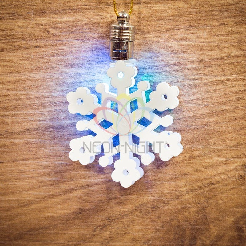 Светодиодная подвесная фигурка ''Снежинка'' 6?6 см — яркий, современный, безопасный интерьерный декор, который станет прекрасной альтернативой обычным елочным игрушкам. Изделие с эффектной подсветкой подвешивается при помощи тонкого шнурка, прикрепленного к металлической гильзе. Внутри блока находятся 3 батарейки типа LR41. Независимость от розетки позволяет украсить любой уголок вашего дома, а экономичность светодиода RGB дает возможность надолго забыть о периодической замене элементов питания. В цветовой гамме свечения более 256 вариантов.