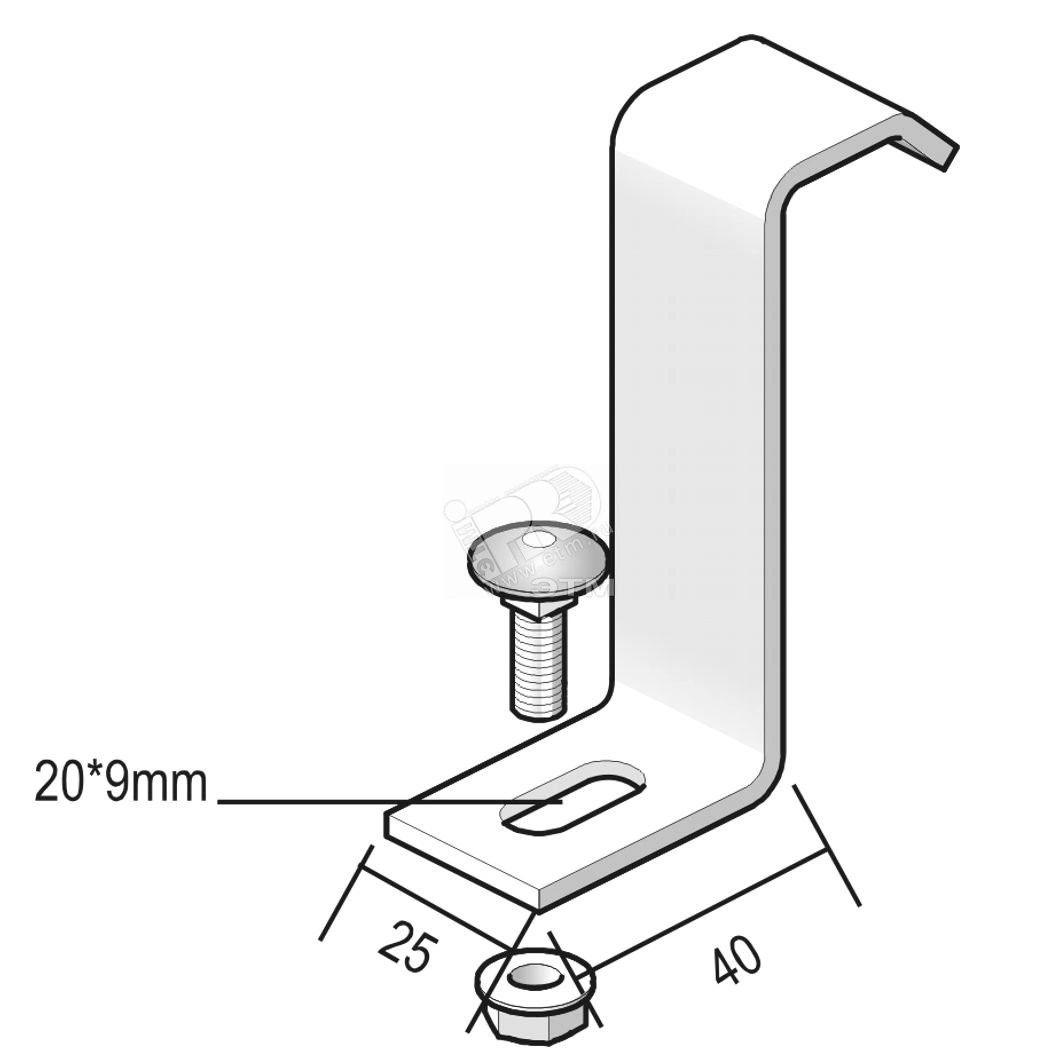 HDBKIE25 - лотковый прижим, предназначенный для фиксации лестничных кабельных лотков типа HDKLIE. Изготовлен из высококачественного материала, покрытого слоем горячего цинка, что обеспечивает его долговечность и стойкость к коррозии. Поставляется в комплекте с винтом RB6.20 и гайкой RM6.