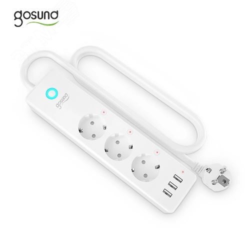 Фильтр умный сетевой Gosund Smart plug Wi-Fi, 3 розетки, 3 USB, 15А, 3680 Вт