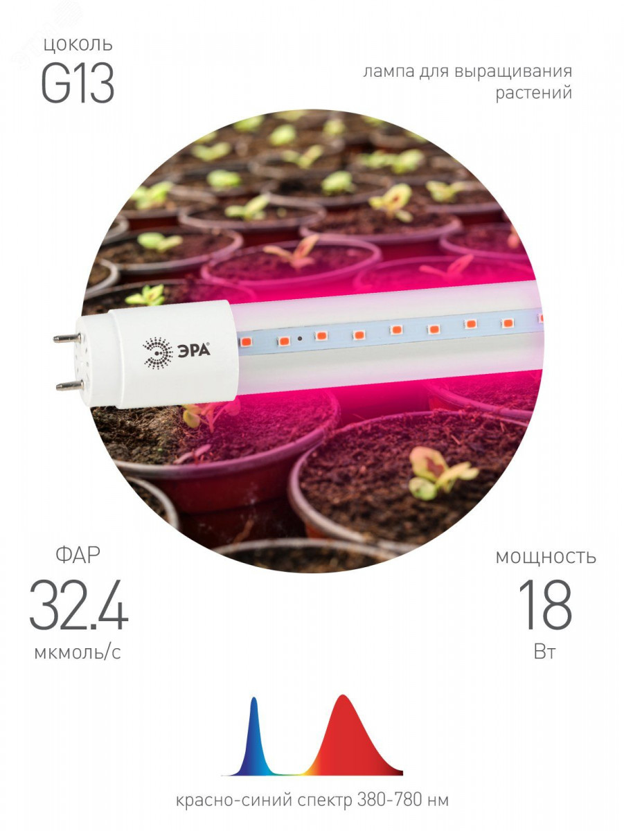 Фитолампа с цоколем G13 ЭРА FITO-18W-RB-Т8-G13-NL станет отличным выбором для выгонки зелени, а также выращивания листового салата, рассады помидоров и других видов пасленовых. Кроме того, с помощью этого светильника Вы также сможете разводить и некоторые виды декоративных растений. Красно-синий спектр ускорит рост и увеличит темпы фотосинтеза, а простой дизайн позволит модели легко вписаться в интерьер балкона или кухни. Основное достоинство такой фитолампы легкий монтаж, возможность моделирования спектра в течение жизни растения и равномерное распределение освещения.