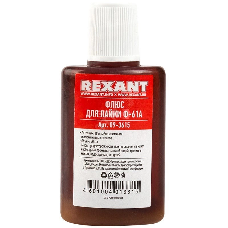Флюс для пайки Ф-61А (пайка алюминия) 30 мл REXANT предназначен для удаления оксидов с поверхности под пайку, улучшения растекания жидкого припоя при пайке алюминия и алюминиевых сплавов. Изготовлен на основе фторборатов, что значительно выделяет его из всей группы соединений для пайки. Данный низкотемпературный флюс применяется при пайке деталей или поверхностей припоями оловянно-свинцовой группы в температурном диапазоне 150 до 320 градусов. После пайки остатки соединения убирают водой или смоченной в спирте салфеткой. Состав - 82% триэтаноламин, 10% фторборат цинка, 8% фторборат аммония Емкость - 30 мл Меры предосторожности - при попадании на кожу необходимо промыть мыльной водой, хранить в местах, недоступных для детей.