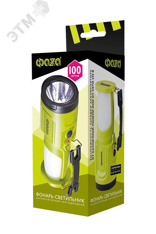 Светодиодный аккумуляторный фонарь-светильник с солнечной панелью предназначен для освещения в двух режимах – фонарь (1Вт светодиод, 83 люмена) и светильник (24 светодиода, 132 люмена). Матовый плафон светильника обеспечивает рассеивающий (не ослепляющий) свет. Два способа зарядки аккумулятора - от сети 220 В (кабель в комплекте) и от энергии солнца (солнечная панель). Эргономичная ручка, складывающаяся для удобства транспортировки.