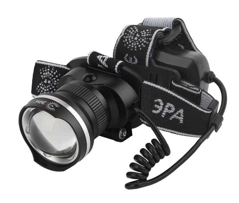 Фонарь аккумуляторный налобный GA-806 CREE 5Вт регулир. фокус литиевый аккум. 2.5А.ч алюм. USB пластик. (кор.) Эра Б0039626