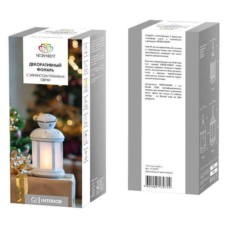 Полное описание: Фонарь декоративный 12х12х20.6см тепл. бел. с эффектом пламени свечи корпус бел. Neon-Night 513-067