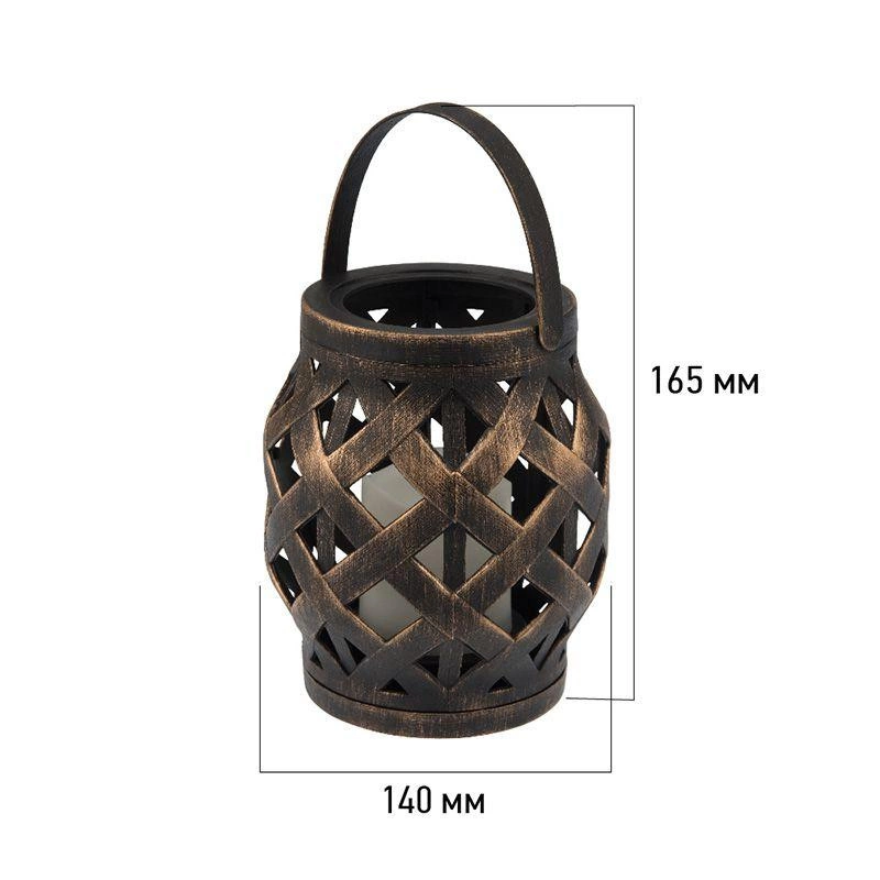 Полное описание: Фонарь декоративный со свечкой плетеный корпус бронза 14х14х16.5см тепл. бел. NEON-NIGHT 513-055
