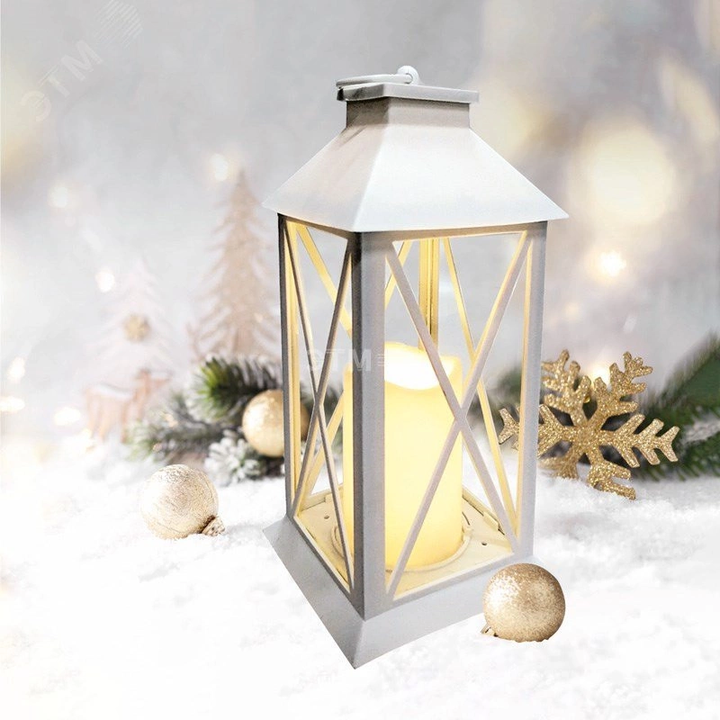 Декоративный фонарь со свечкой в резном корпусе — оригинальное новогоднее украшение интерьера, которое подарит ощущение зимней сказки и рождественских чудес. В корпусе белого цвета в стиле ''прованс'' за стеклом находится главный декоративный элемент — пластиковая свеча, которая излучает теплый белый свет. 1 диод получает питание от 3 батареек типа ААА и экономно расходует заряд. Для управления подсветкой на корпусе предусмотрена кнопка ON/OFF. Кольцо в верхней части позволяет подвешивать фонарь в любом удобном месте.