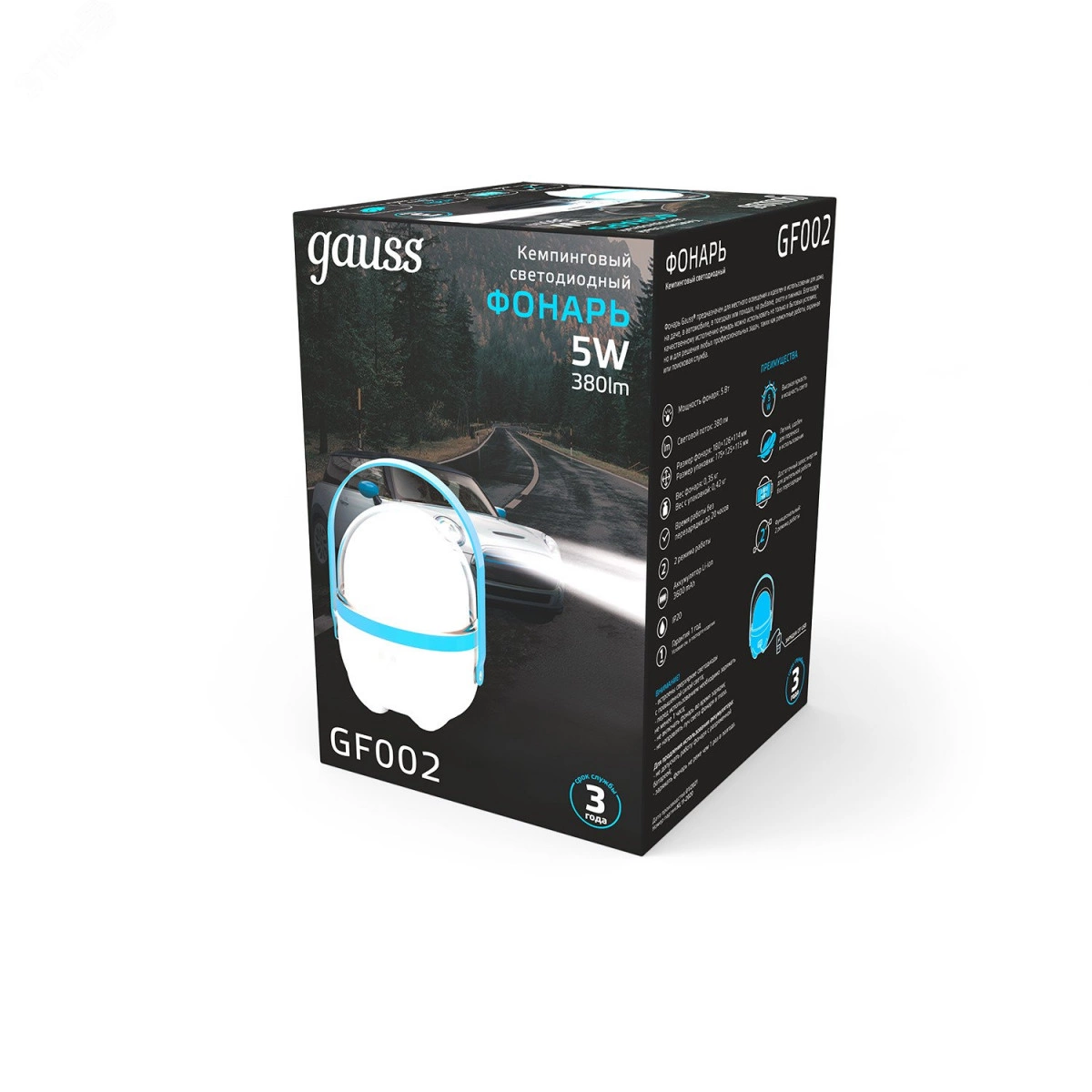 Фонарь кемпинговый туристический светодиодный LED 5 Вт 380 Лм модель GFL002 голубой c Li-ion аккумулятором 3600 мАч диммируемый Gauss