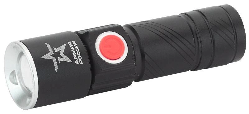 Фонарь MA-601 АРМИЯ РОССИИ универсальный Циркон 3Вт алюм. регул. фокус 3 режима Li аккум. USB блист. ЭРА Б0030191