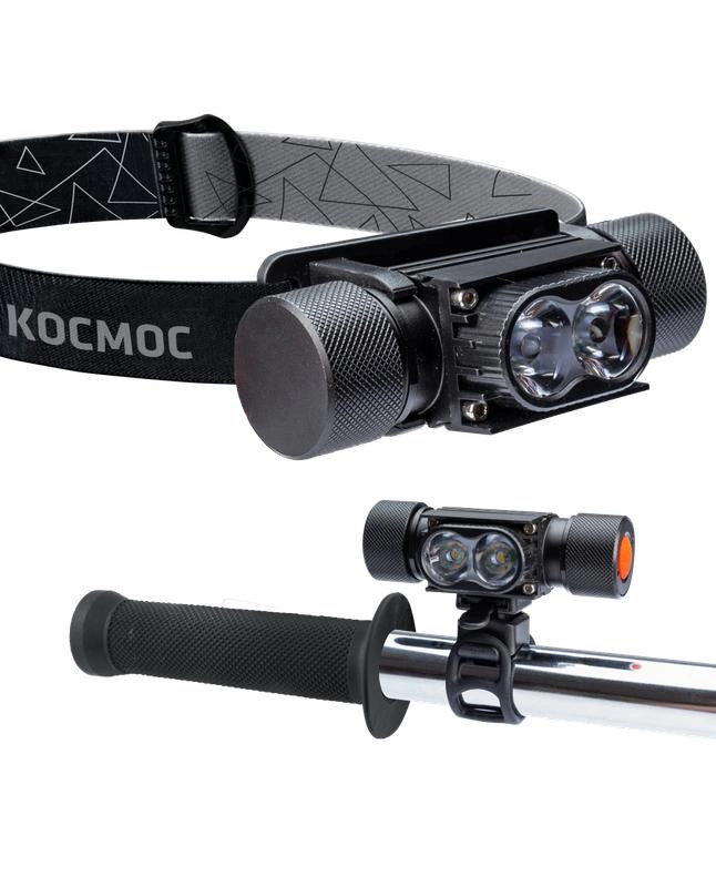 Фонарь налобный аккум. велосипедный 10ВтLED съемн Li-ion 18650 1200мА.ч алюминий USBшнур КОСМОС KOS501Lit