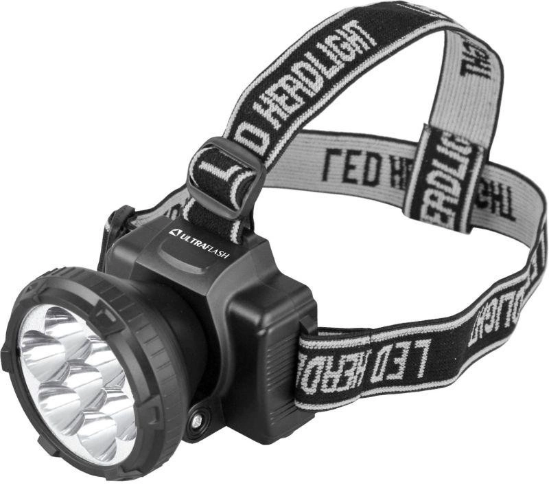 Фонарь Ultraflash электрический светодиодный налобный аккумуляторный. Цвет корпуса: матовый черный. Материал корпуса - пластик. Источники света: 7 светодиодов со световым потоком 30 люмен. Дистанция освещения - до 20 метров. Два режима работы. Выключатель: двухпозиционный кнопочный. Время работы при полностью заряженном аккумуляторе: 4 светодиода - до 9 часов, 7 светодиодов - до 5 часов. Время заряда - 7 часов. Комплектация: фонарь, свинцово-кислотный аккумулятор с напряжением 4 В емкостью 0,5 А-ч, сетевой кабель для заряда от сети ~220 В, поворотный отражатель, эластичный ремешок для ношения на голове, инструкция, упаковка. Степень пыле-влаго-защиты IP22. Упаковка - коробка. Максимальный линейный размер фонаря 7,5 см. Размер упаковки 9 см x 9 см x 8,2 см. Вес без упаковки 0,16 кг. Вес с упаковкой 0,22 кг.