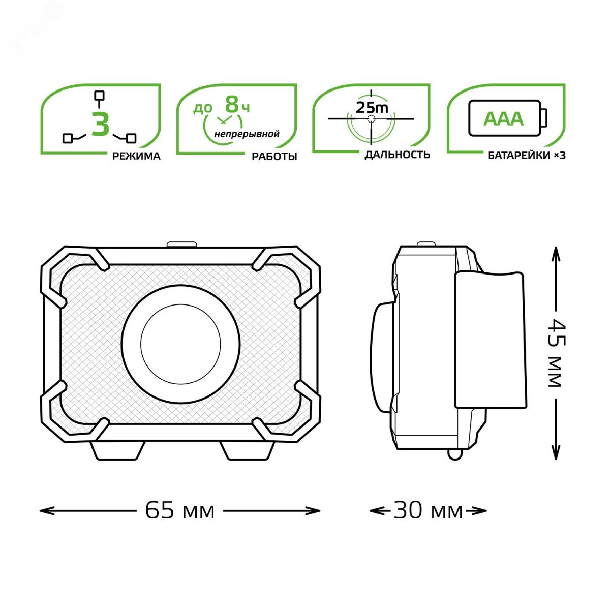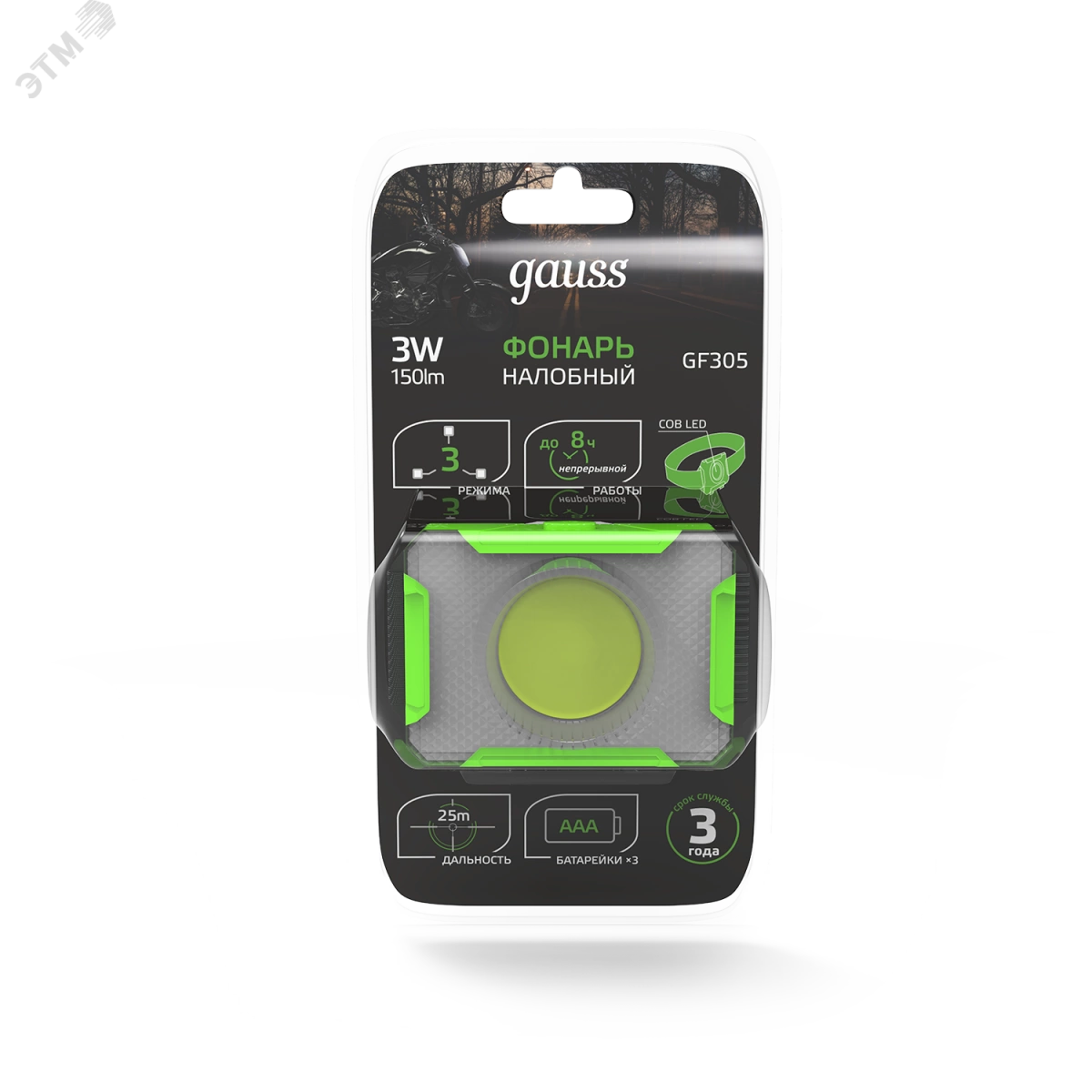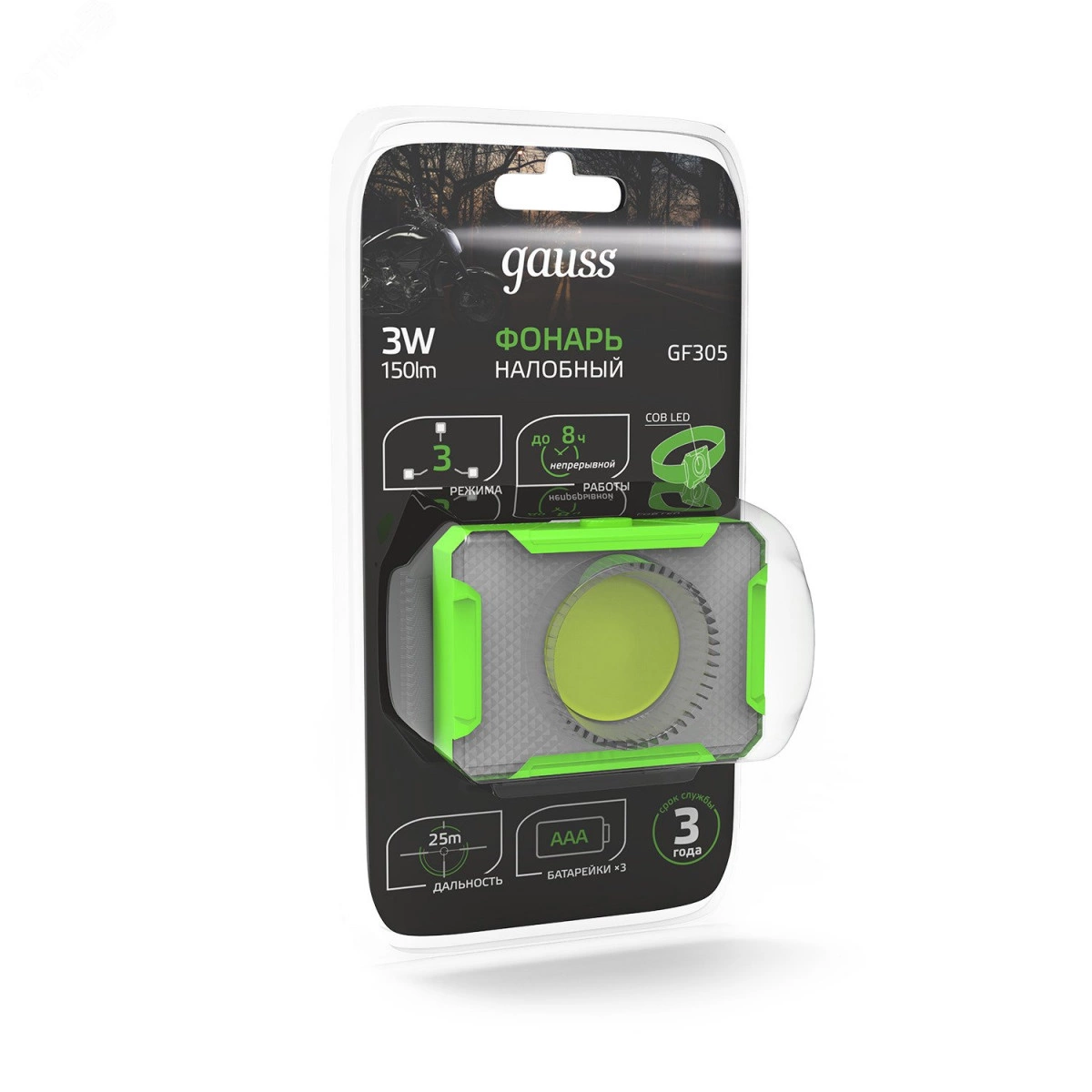 Фонарь налобный LED 3 Вт 150 Лм от батареек 3хAAA модель GFL305 Gauss