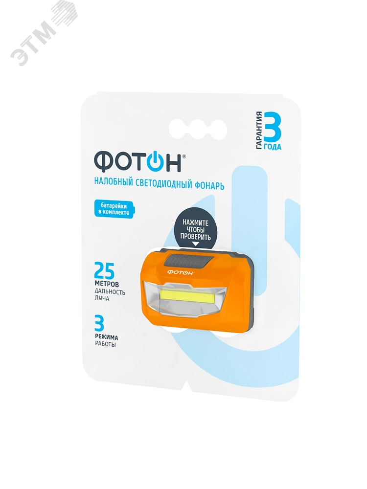 Фонарь налобный светодиодный на батарейках ФОТОН SH-600 (3W, рассеянный свет, батарейки в комплекте)