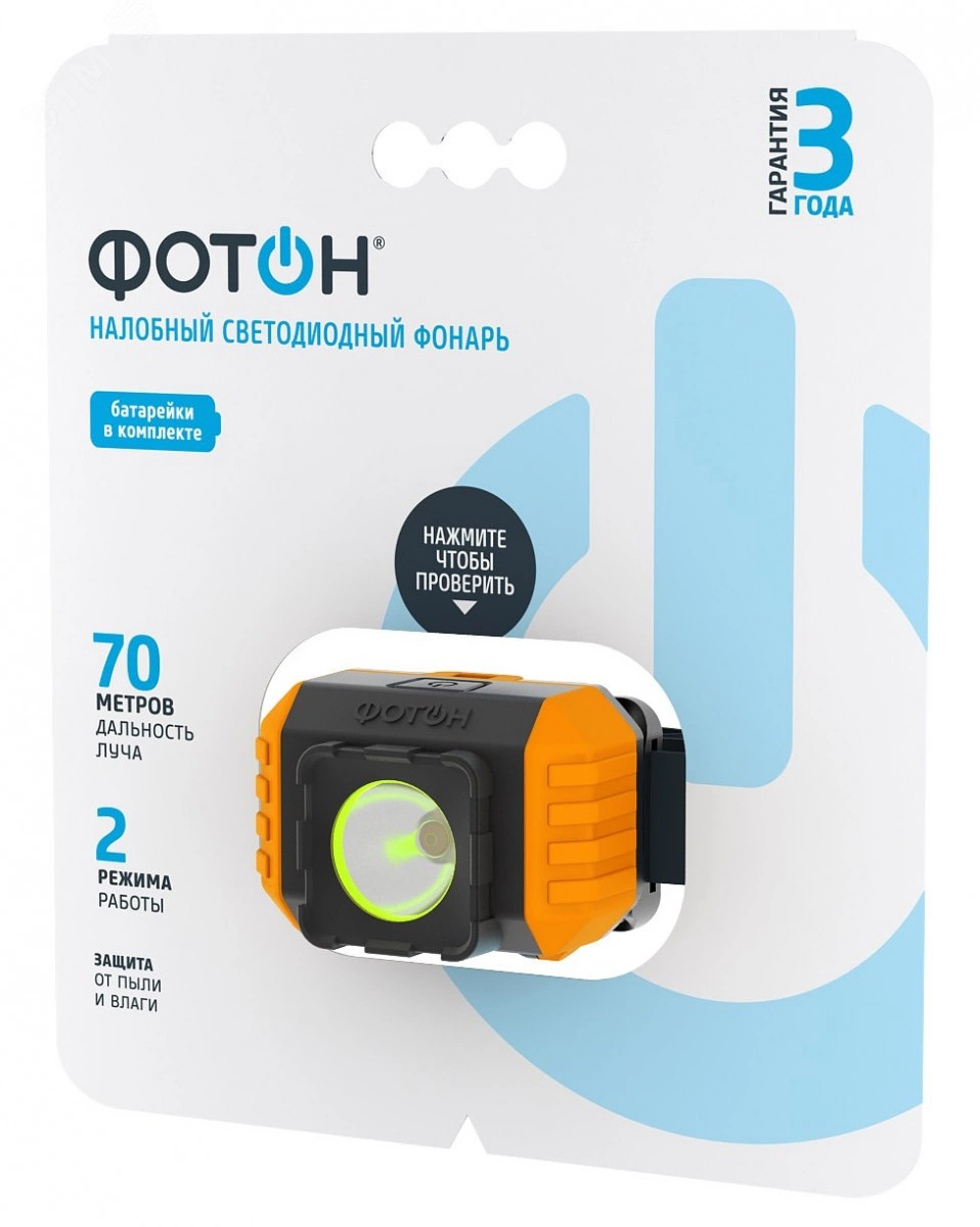 Фонарь ''ФОТОН'' RSH-700 - это мощный налобный фонарь для профессионального и бытового использования. Работает от 3х батареек AAA(LR03) (в комплекте). Обеспечивает световой поток до 180 люменов и дальность луча 70 метров. Фонарь работает в двух режимах - 30% и 100% яркости. Класс защиты от влаги и пыли IP54 позволяет использовать фонарь в дождливую погоду. Предоставляется безусловная гарантия 3 года.