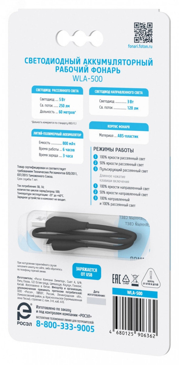 Фонарь рабочий аккумуляторный светодиодный ФОТ Н WLA-500 (5W + 3W)