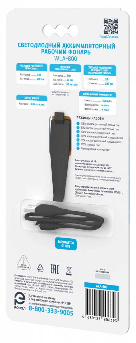 "Фонарь рабочий аккумуляторный светодиодный ""ФОТОН"" WLA-800 (5W + 1W + 5W)"