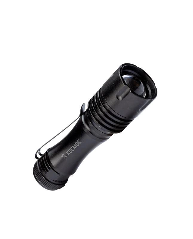 Фонарь ручной 1ВтLED с линзой с зумом 1xAA корпус алюминий зажим для крепления КОСМОС KOS105B