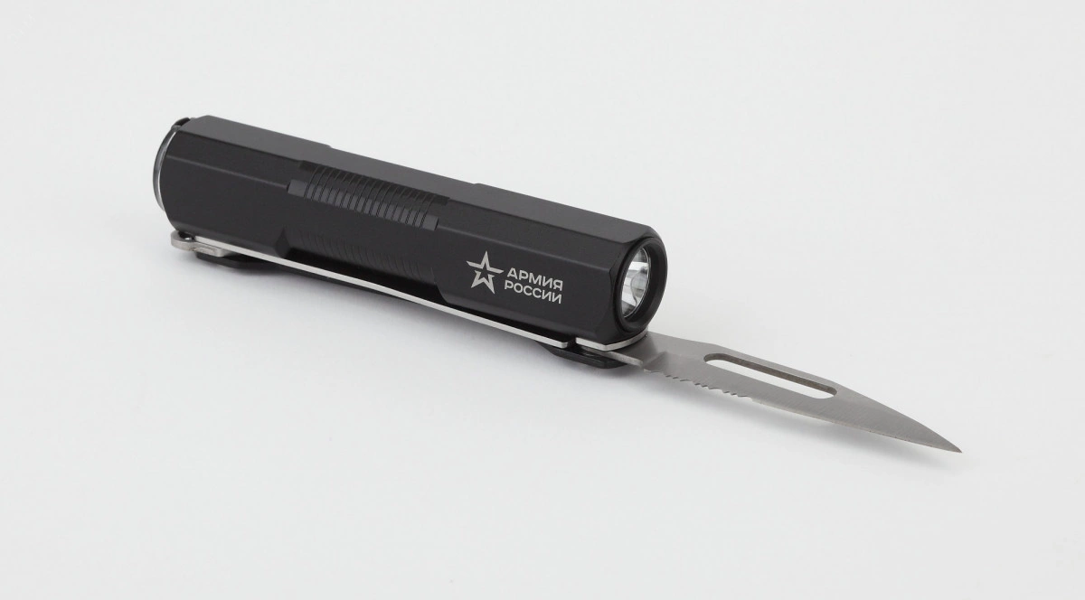 Фонарик карманный аккумуляторный, ударопрочный металлический корпус, перочинный ножик, powerbank USB, диммер MA-702 Кинжал Армия России
