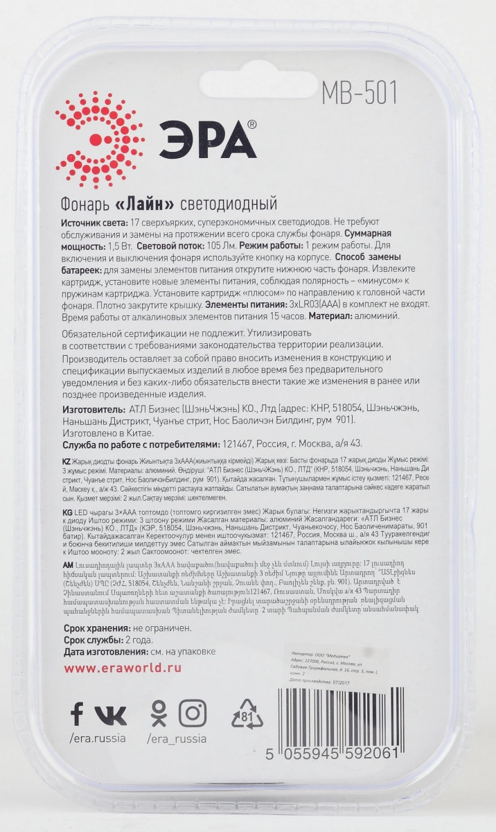 Светодиодный ручной фонарь для ежедневного использования. Это очень простой фонарь, который отлично выполняет свою единственную функцию - является дополнительным источником света. Такой источник часто требуется в повседневных делах, осветить темное место в кладовке, посветить на полку или путь до щитка, если внезапно отключилось электричество. Таких ситуаций множество, когда требуется надежный и качественный инструмент. В таких случаях не нужен более мощный прожектор или аварийный фонарь с множеством функций. Для ежедневного использования достаточно иметь компактный фонарик с ярким светом. Фонарь МВ-501 оснащен 17 качественными светодиодами, которые светят ровным, ярким белым светом.