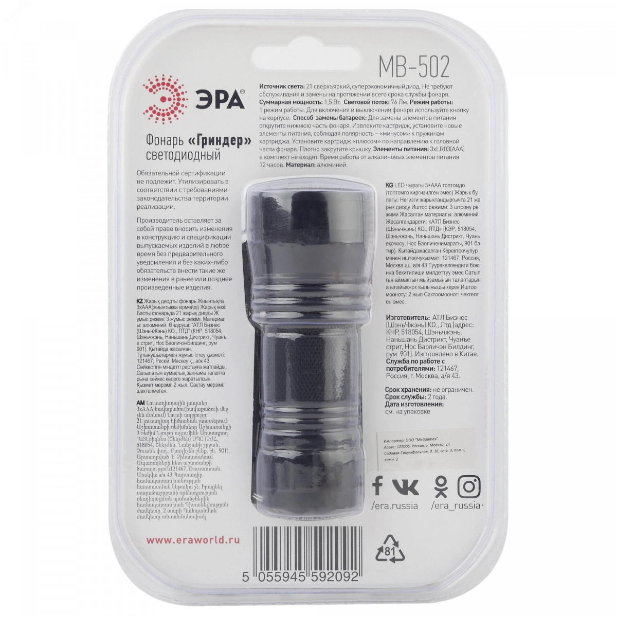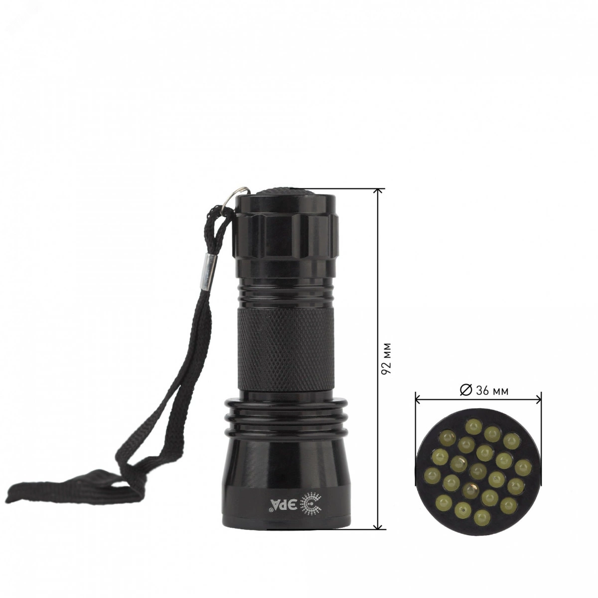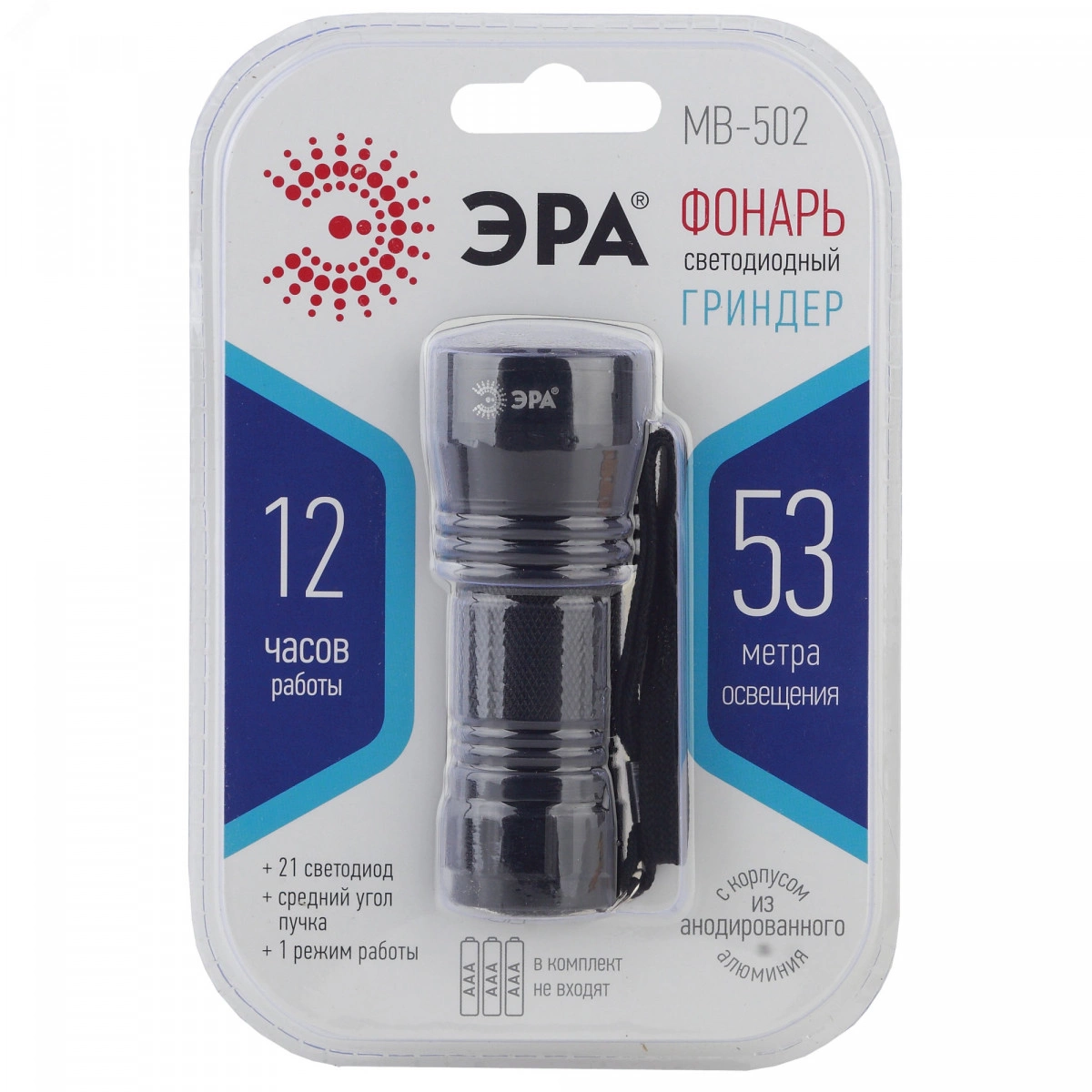 Фонарик карманный на батарейках 3хAAA, ударопрочный металлический корпус, текстурированная ручка, ремешок на руку, 21 LED MB-502 Гриндер ЭРА
