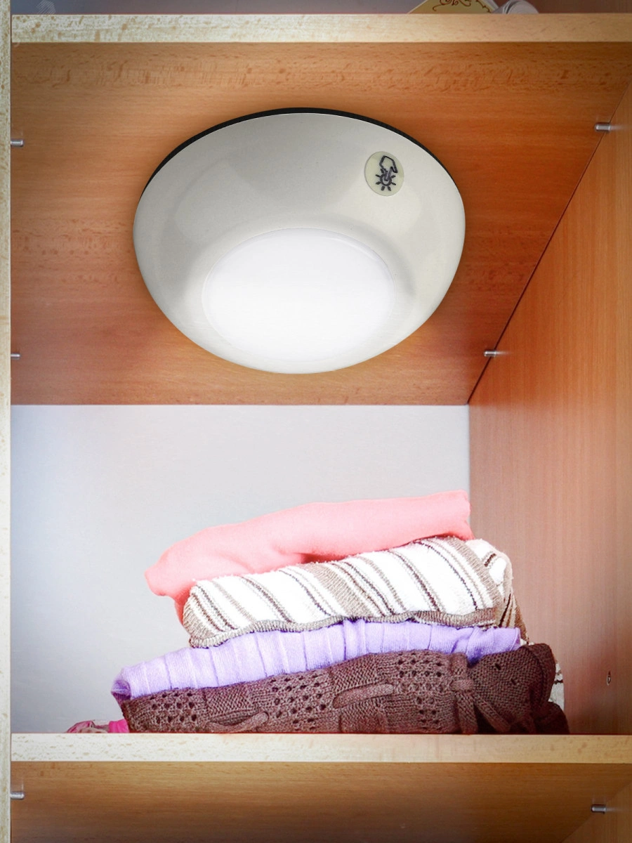 Фонарь-пушлайт ''Луна-1'' практичный и в тоже время простой фонарь для повседневного использования. Преимущество такого фонаря - долгий срок службы, яркие светодиоды и портативность. Этот компактный фонарь отлично подойдет для освещения темных полок, лестниц, отдаленных плохо освещаемых углов гаража или подсобки. При этом лаконичный дизайн пушлайта позволяет его использовать не только как аварийное освещение, но и как декоративное дополнение. Фонарь Луна-1 выполнен в классическом дизайне, нейтральный белый ободок и центральная светящаяся часть. Фонарь быстро и надежно крепится к любой поверхности с помощью самоклеящегося элемента. При этом пушлайт не нужно отклеивать, чтобы заменить батарейки.