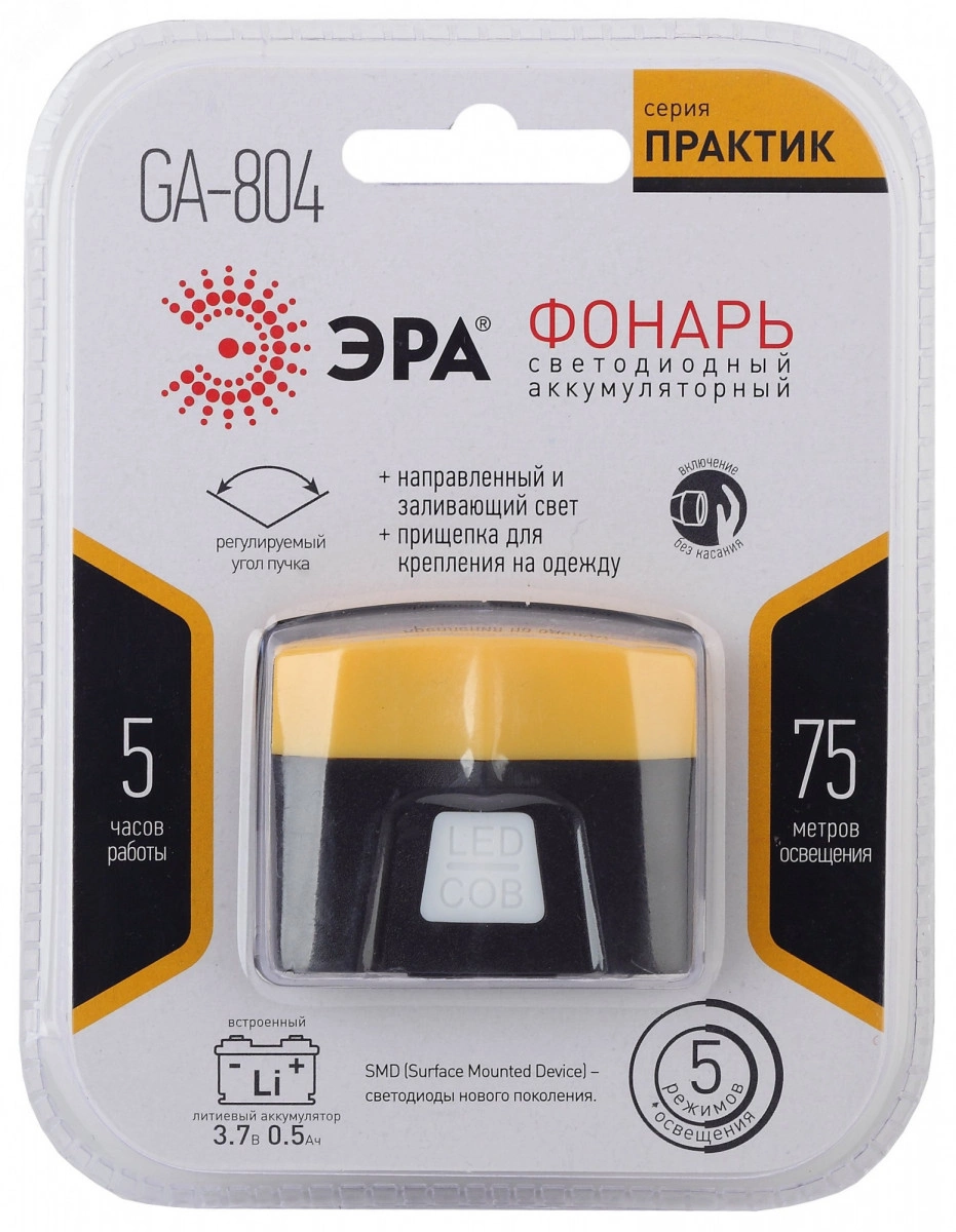 Фонарик кемпинговый, ударопрочный, сенсорное включение, регулируемый угол наклона, 5 режимов GA-804 Практик ЭРА