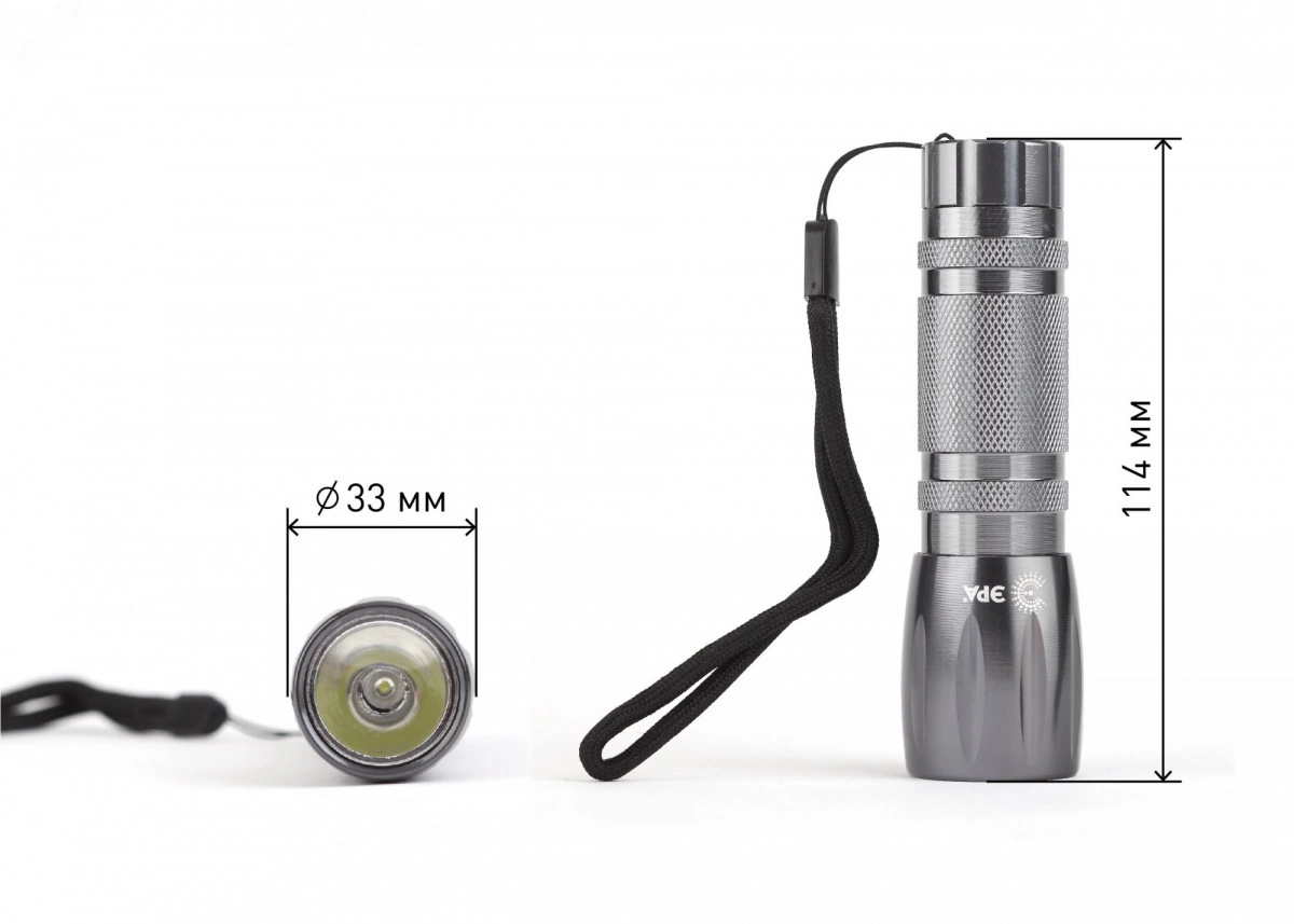Фонарик на батарейках 3хААА карманный кемпинговый, металлический аллюминиевый корпус, ударопрочный SD1W ЭРА