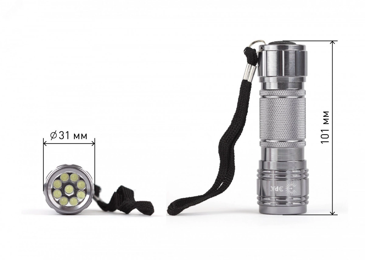 Портативный светодиодный фонарь SD9 в прочном алюминиевом корпусе от компании ЭРА. Фонарик предназначен для повседневного использования. Прочный, яркий, компактный - SD9 станет прекрасным помощником для использования как в городе, так и на природе. Устройство имеет небольшие размеры и яркий направленный свет. В него встроено 9 светодиодов мощностью 0,6 Вт. Фонарь светит ярким белым светом. Дальность луча составляет 60 метров, а световой поток 50 Лм.Корпус из анодированного алюминия обладает высокой прочностью, специальные противоскользящие насечки делают карманный фонарик удобным в использовании. Время работы без перерыва составляет 30 часов. Устройство заряжается от трех батареек типа ААА. Фонарик удобно носить с собой или подвешивать благодаря специальному ремешку. Ручной туристический фонарь от бренда ЭРА это компактность и практичность в одном флаконе!