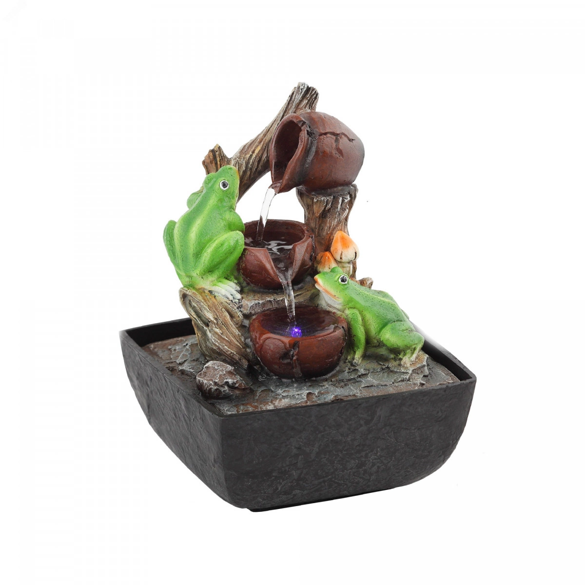 Если в собственном доме или квартире вы желаете обустроить уютный уголок, где так приятно отдохнуть после тяжелых трудовых часов, обратите внимание на настольный фонтан. Созерцание потока воды с нежным журчанием производит ощутимый релаксационный эффект, успокаивая и расслабляя. Этот небольшой фонтан высотой 24 см украшен жизнерадостными лягушками, отлично детализирован, его хочется рассматривать. Такой симпатичный декор будет радовать взгляд и поднимать настроение. Оснащен светодиодной подсветкой. Фонтан функционирует от сети.