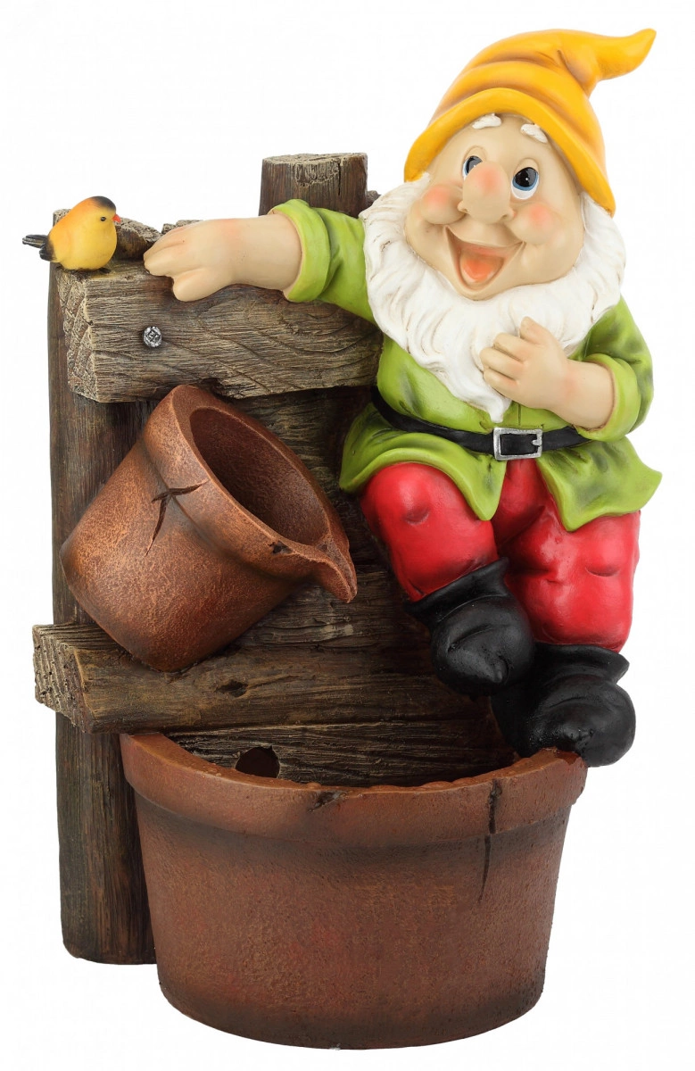 Уличный фонтан Green Apple GAUF-02 Гном 56 см. Садовые фонтаны - отличное решение, если Вы хотите украсить ландшафт участка своего загородного дома, коттеджа или дачи с минимальными затратами сил и средств. В последнее время садовыми фонтанами облагораживают территории не только частных домовладений, но и общественных мест для отдыха: ресторанов, кафе, гостиниц, санаториев, пансионатов, парков, скверов и т. д. Фонтан создает умиротворяющую атмосферу для отдыха в Вашем саду. Садовая фигурка гнома отлично детализирована. Добавьте декора от компании Green Apple, чтобы освежить пейзаж загородного дома или дачи!