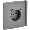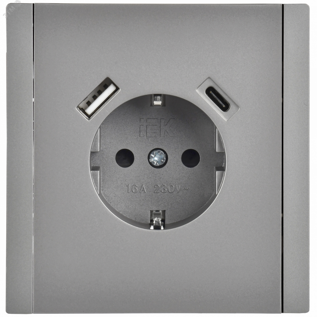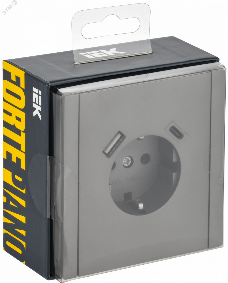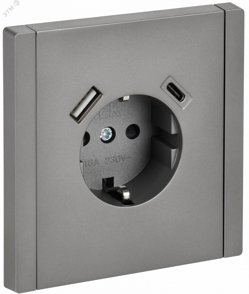FORTE&PIANO Розетка 1-местная с заземлением с защитными шторками винтовое крепление 16А USB A+C 18Вт FP547 сталь IEK