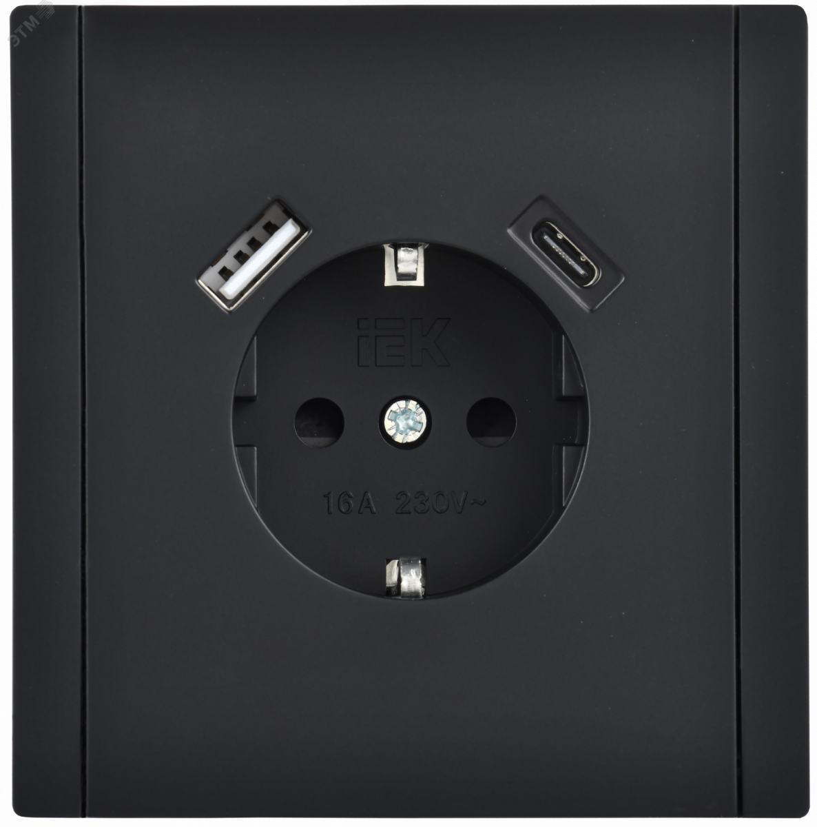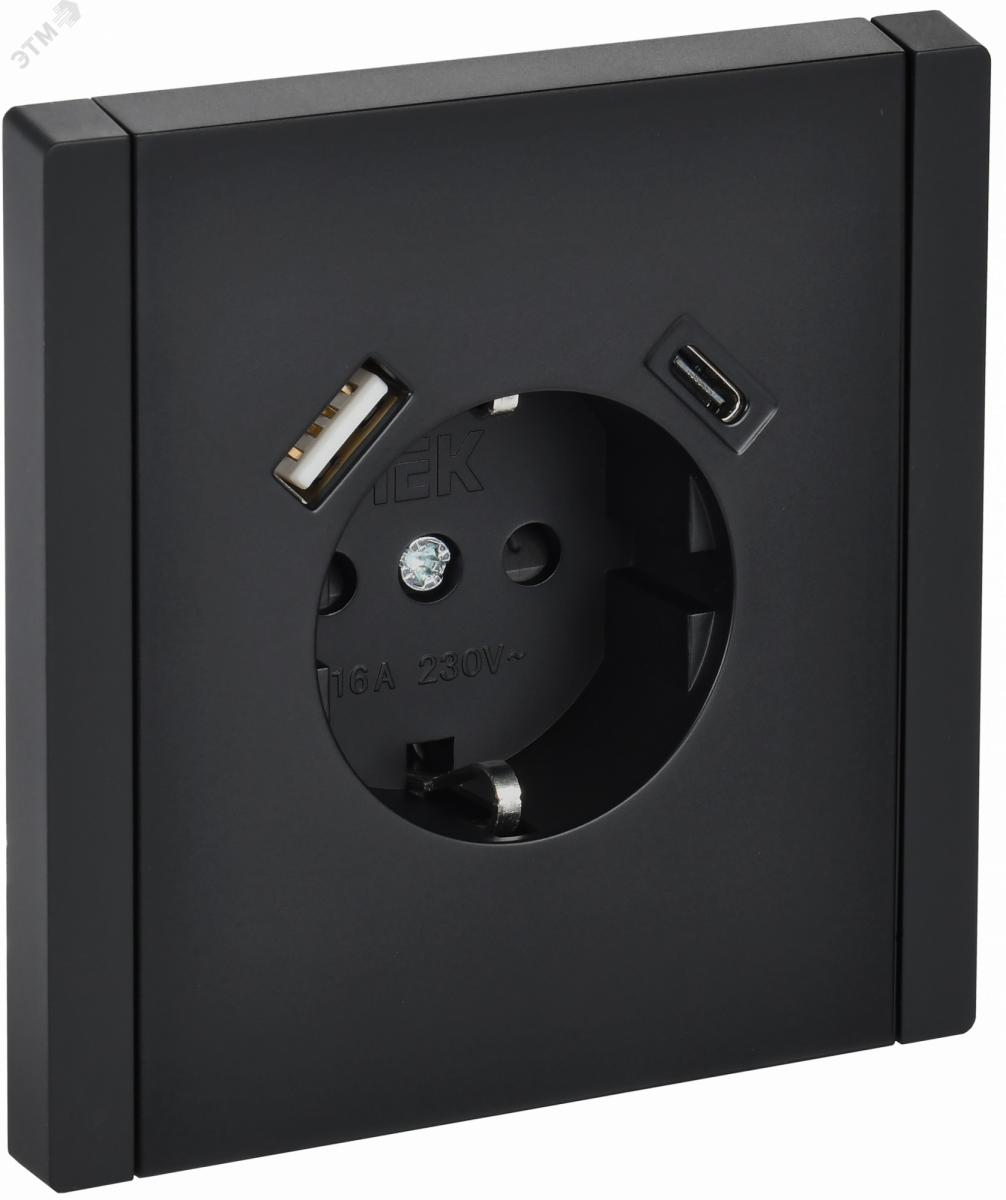 FORTE&PIANO Розетка 1-местная с заземлением с защитными шторками винтовое крепление 16А USB A+C 18Вт FP147 черный IEK