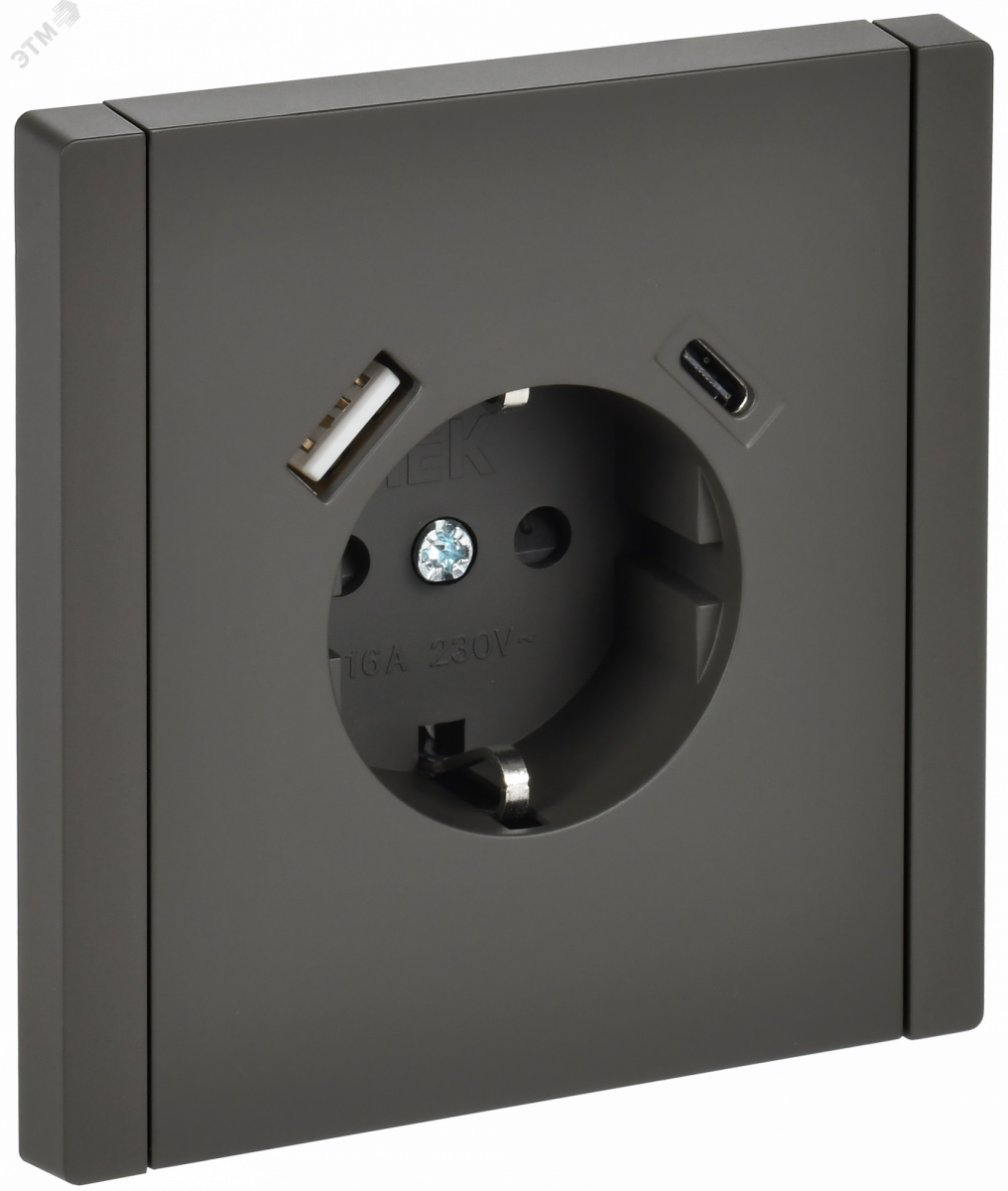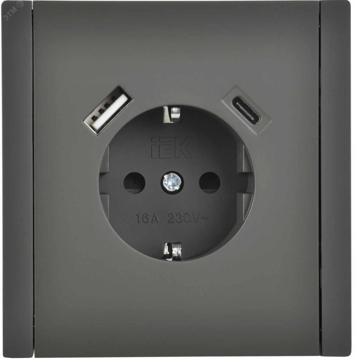 FORTE&PIANO Розетка 1-местная с заземлением с защитными шторками винтовое крепление 16А USB A+C 18Вт FP347 серый IEK