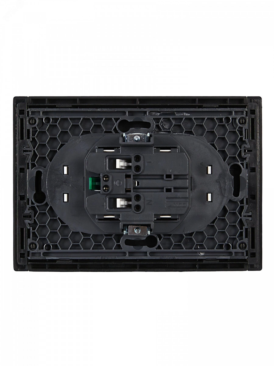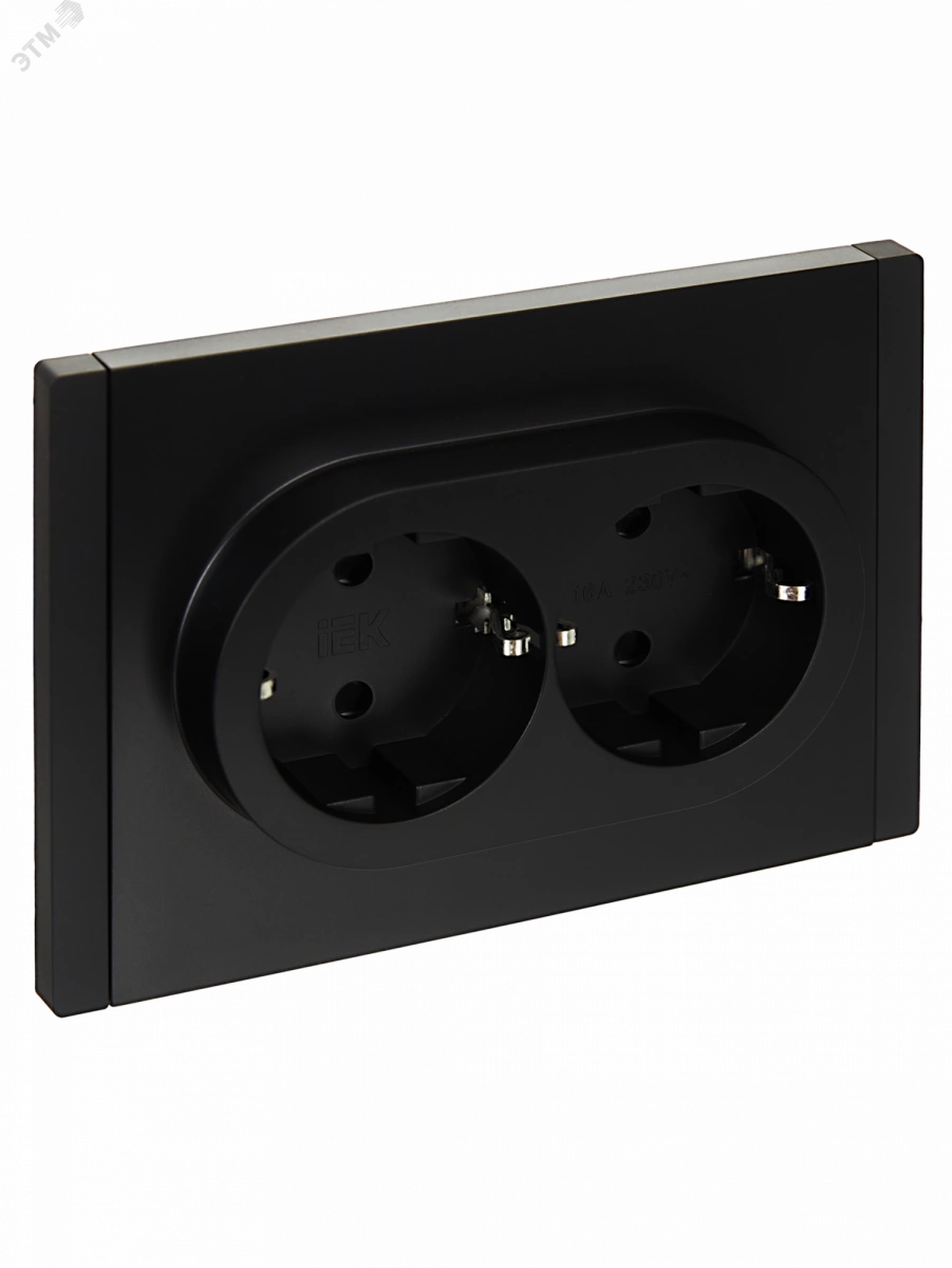 FORTE&PIANO Розетка 2-местная с заземлением с защитными шторками безвинтовое крепление 16А FP123 черный IEK