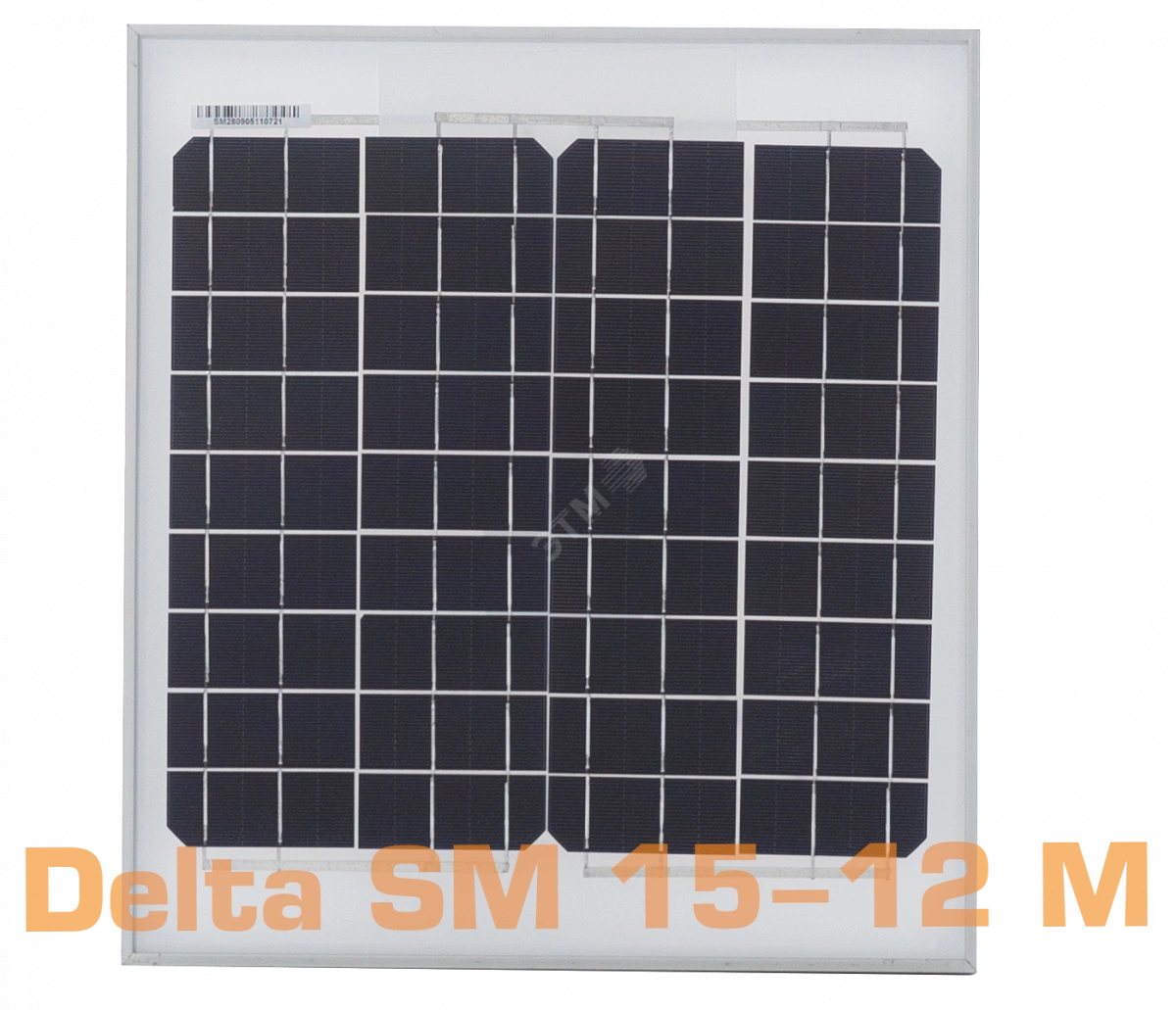 Delta SM 15-12 M - фотоэлектрический солнечный модуль (ФЭМ) поликристаллического типа, пиковой мощностью 15 Вт и напряжением 12 В является источником постоянного напряжения. Количество фотоэлементов в модуле составляет 36 штук. Используется в инновационных сетевых и автономных станциях до 1000 В. Солнечная панель Delta SM 15-12 M предназначается для оборудования напряжением от 250 до 750 В. ФЭМ состоит из последовательно соединенных кремниевых преобразователей (элементов), КПД которых составляет 16,5%, спаянных между собой. Высококачественные материалы и передовые технологии позволяют отнести солнечные модули Delta SM 15-12 M к классу качества Grade А, с гарантией от производителя 10 лет.