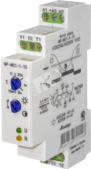 Фотореле предназначено для контроля уровня освещенности выносным фотодатчиком и автоматического, своевременного включения и отключения нагрузки, в соответствии с установленным порогом срабатывания. Устройство используется для управления системами освещения улиц, витрин, залов и т.п. Реле выпускаются в унифицированном пластмассовом корпусе с передним присоединением проводов питания и коммутируемых электрических цепей. Крепление осуществляется на монтажную шину DIN шириной 35мм или на ровную поверхность. Для установки реле на ровную поверхность, фиксаторы замков необходимо переставить в крайние отверстия, расположенные на тыльной стороне корпуса. Конструкция клемм обеспечивает надежный зажим проводов сечением до 2,5 мм2.