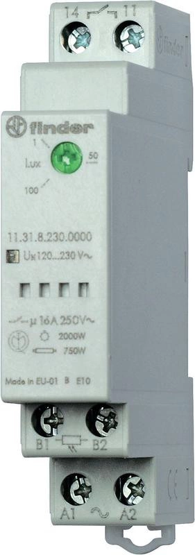 Полное описание: Фотореле модульное с фотоэлементом 011.02 монтаж на рейку 35мм 1NO 16А 230В AC 1…100люкс 17.5мм фотореле IP20/фотоэлемент IP54 FINDER 113182300000