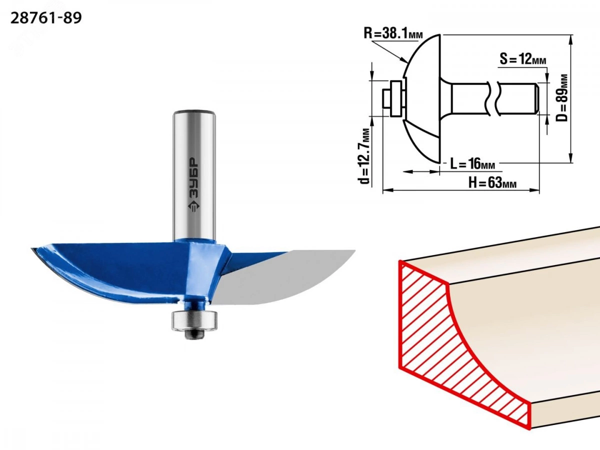 Фреза кромочная калевочная №6 38.1x18мм, радиус 6.3мм