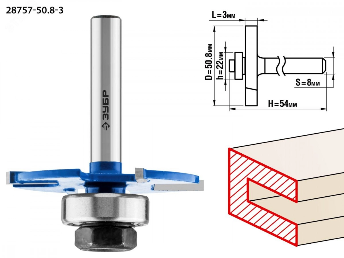 Фреза горизонтально-пазовая 50,8x3мм, хвостовик 8мм
