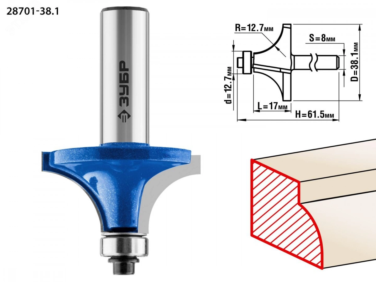 Фреза кромочная калевочная №1 38.1x17мм, радиус 12.7мм