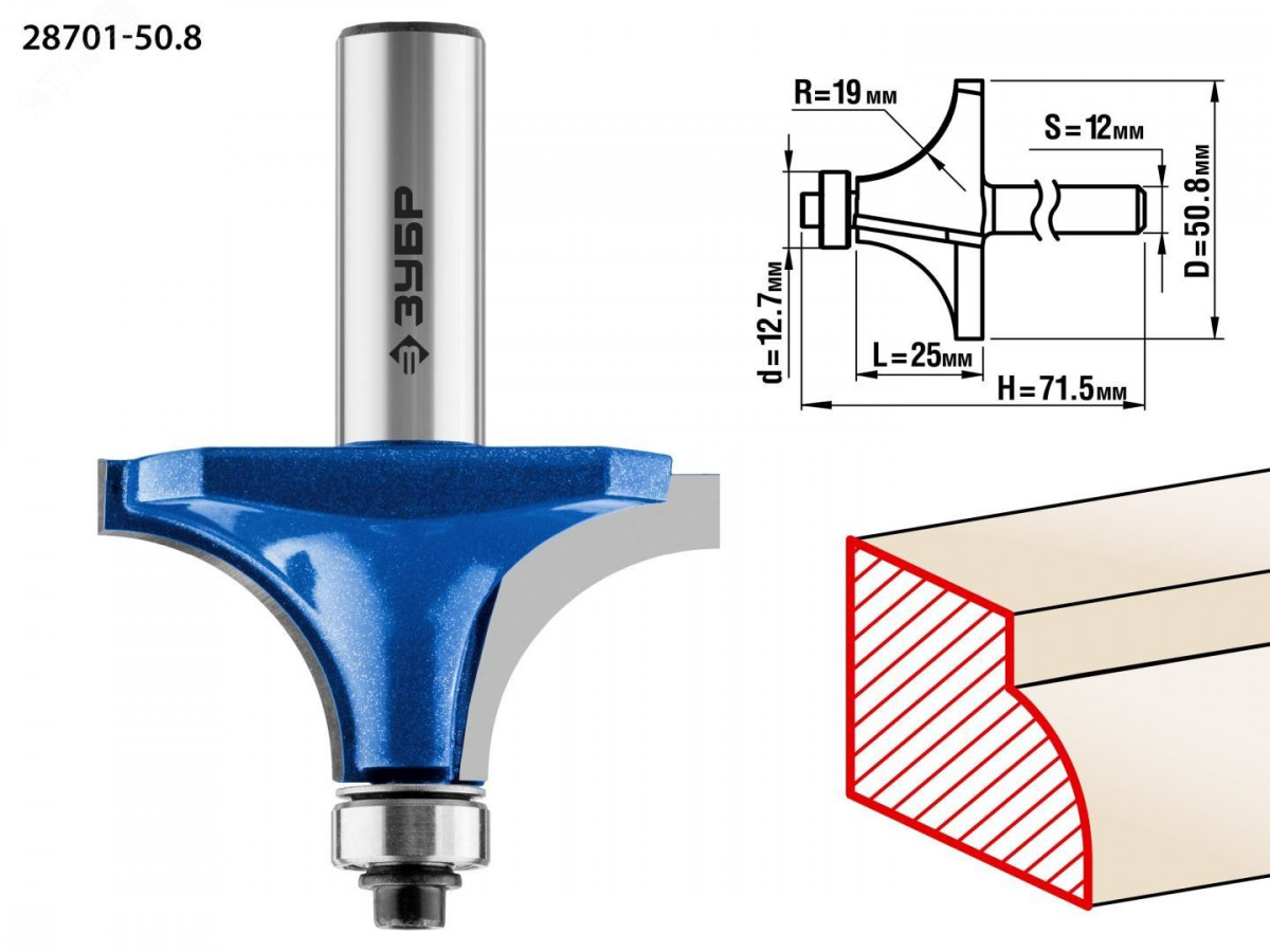 Фреза кромочная калевочная №1 50,8x25мм, радиус 19мм