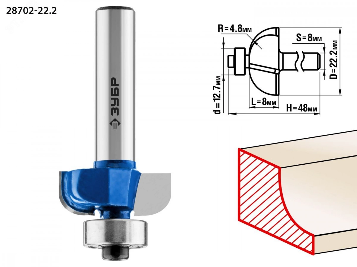 Фреза кромочная калевочная №2 22.2x8мм, радиус 4.8мм