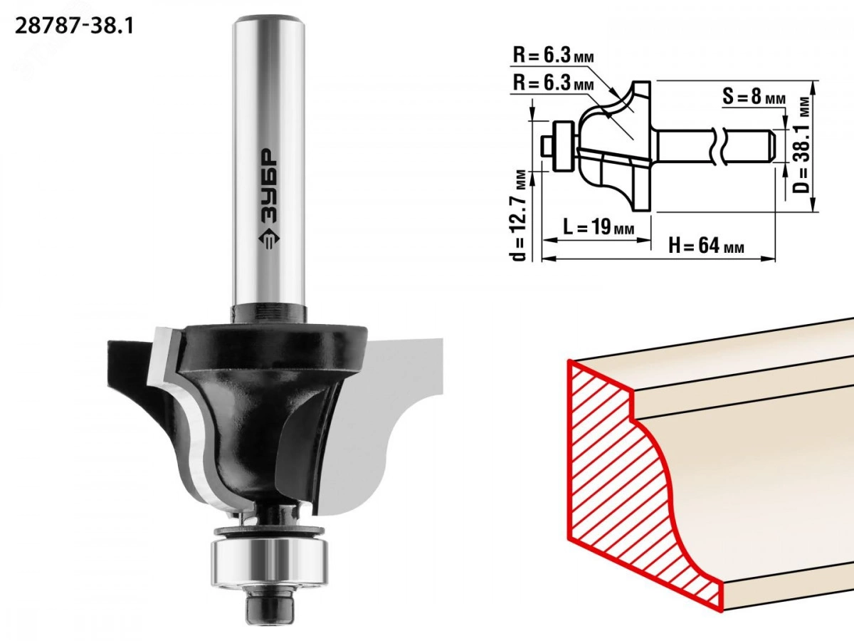Фреза кромочная калевочная №6 38.1x18мм, радиус 6.3мм