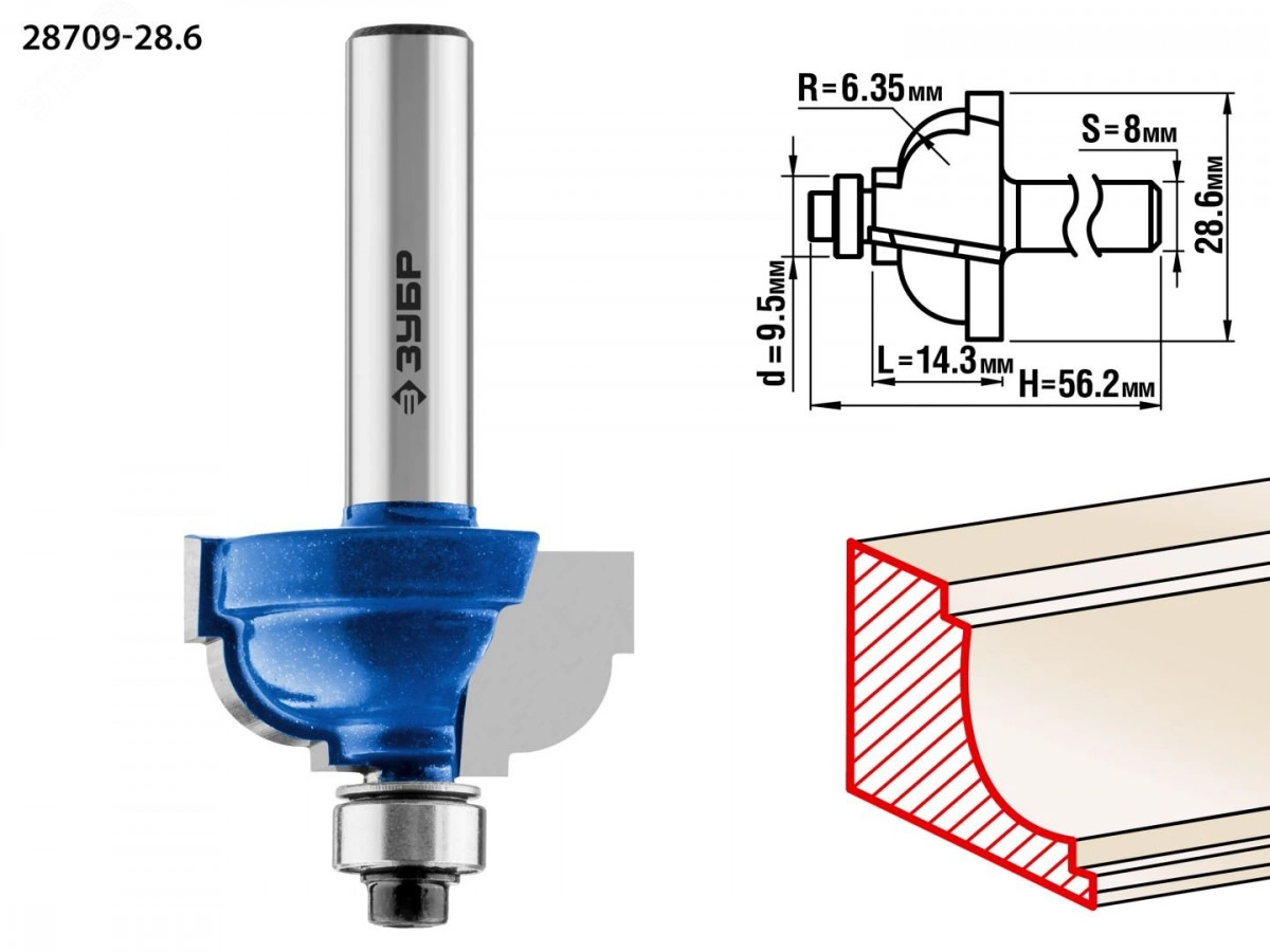Фреза кромочная калевочная №7 28,6x16мм, радиус 6.3мм