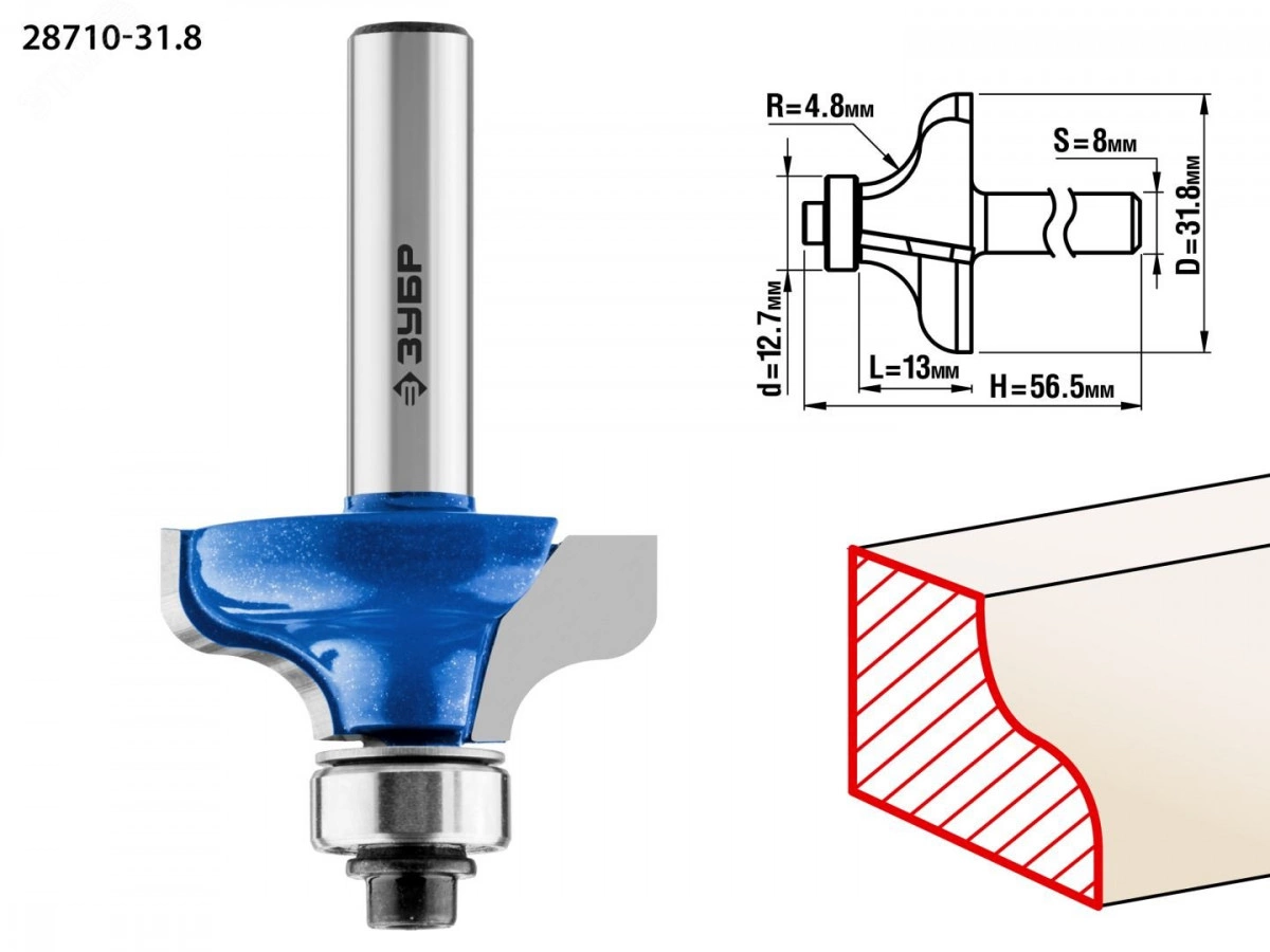 Фреза кромочная калевочная №8 31,8x14мм, радиус 4.8мм